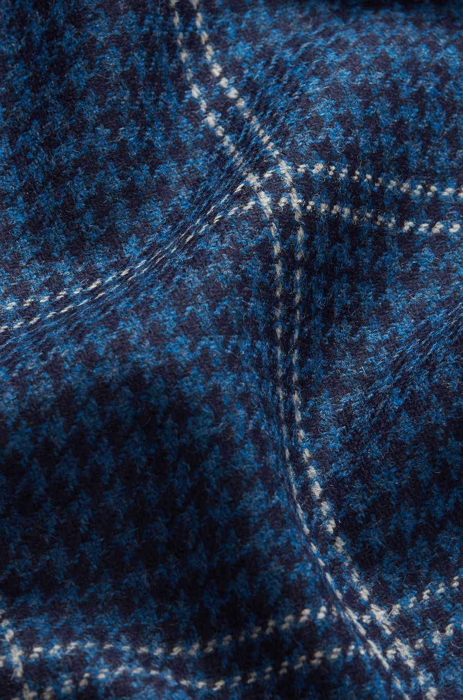 In 2015, Huntsman produced its first cashmere sports jacketing cloth in more than 60 years. A faithful reproduction of a heritage Johnstons of Elgin cloth, first woven in 1953, this black, navy and olive houndstooth came to our attention when we exhibited the Gregory Peck archive of Huntsman outfits. Of the 15 items on display, it was the actor’s houndstooth sports coat from 1961 that drew the most requests – for the cloth and the coat.