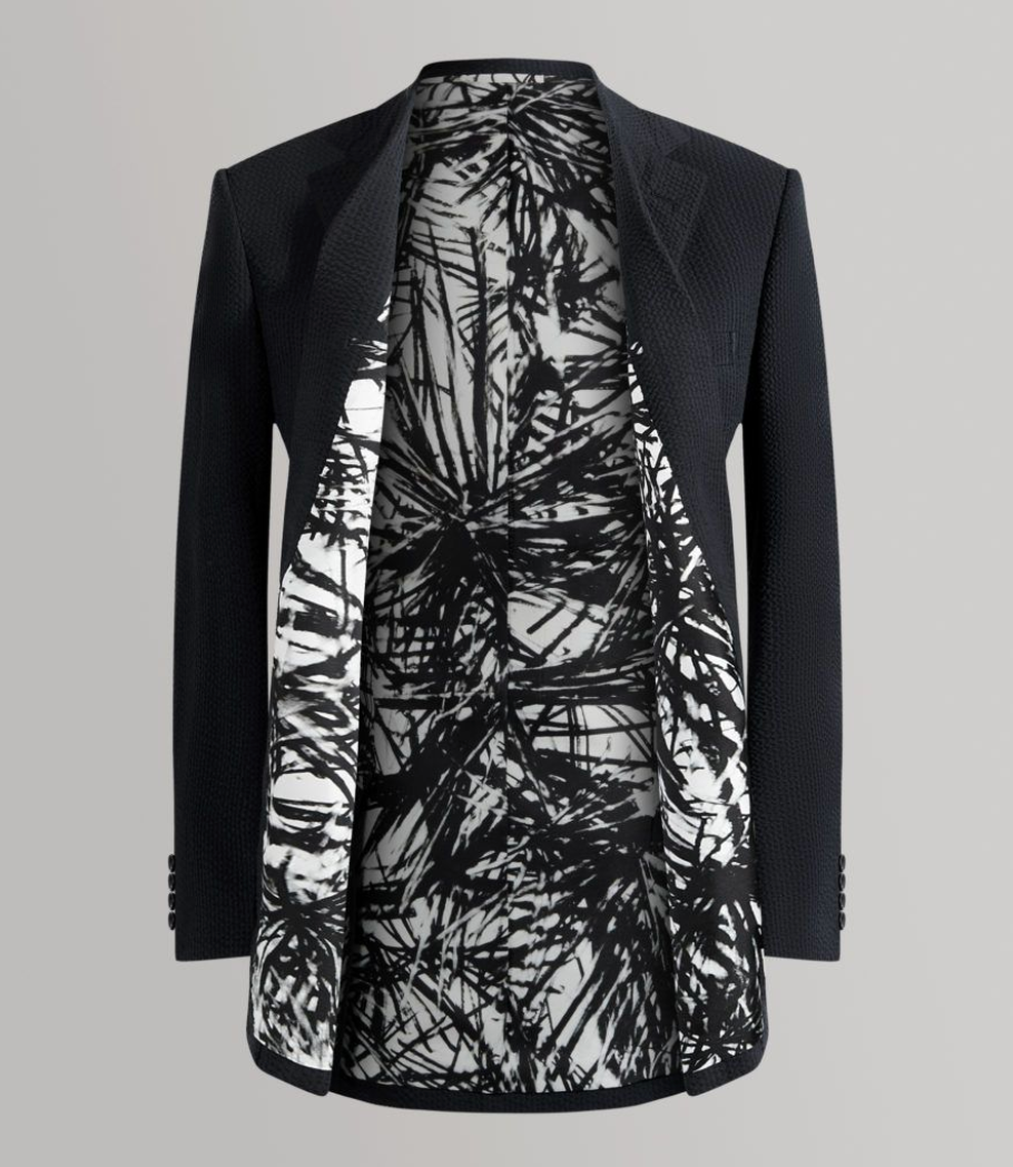 Huntsman’s legendary sartorial style becomes a bona fide work of art, following a collaboration between the house and celebrated American artist Ed Ruscha. Ruscha has lent the design of his striking 1987 work, “Boy Meets Girl,”– an acrylic painting that depicts a dazzling grid of lights, overlaid with the words “Boy Meets Girl” – to the lining of a one-off Huntsman jacket, which was successfully auctioned for $26,000 in October to benefit America’s Alzheimer’s Association.
