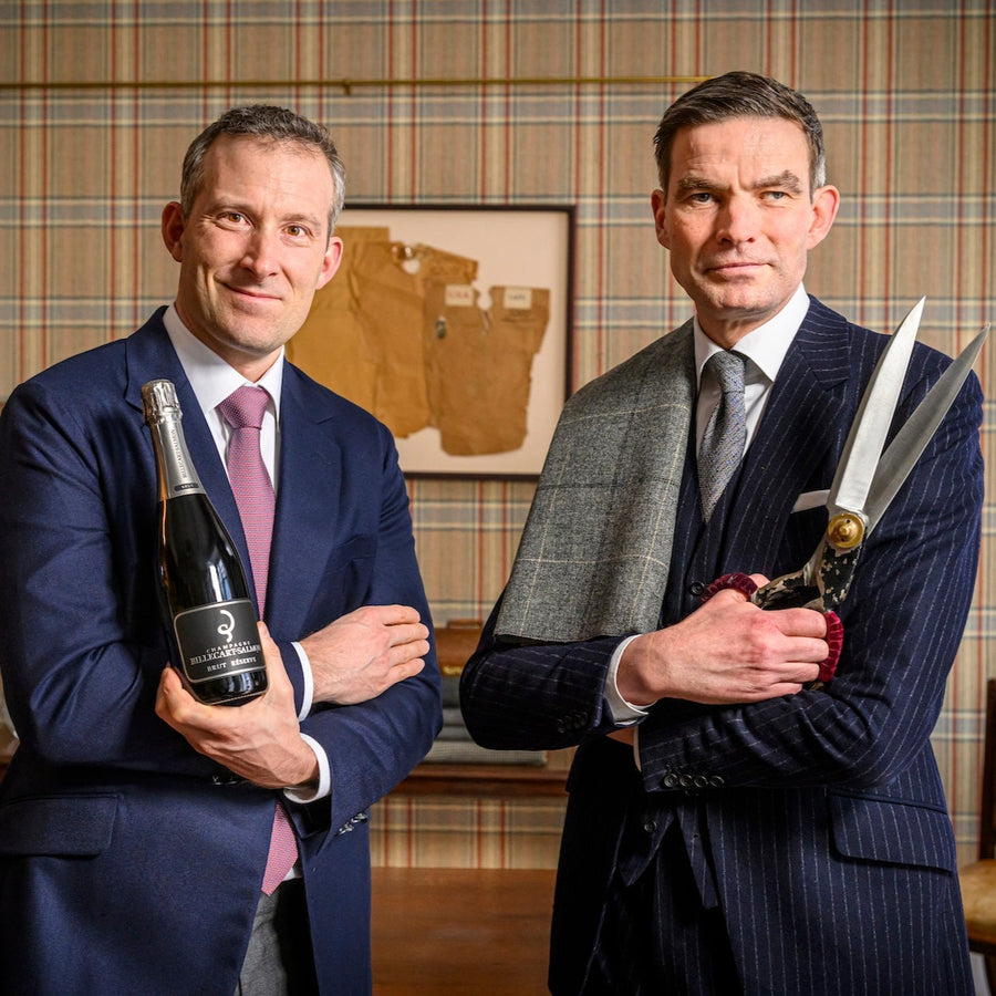 Huntsman has partnered with Billecart-Salmon, the iconic Champagne house, in a collaboration that merges design, craftsmanship, and heritage. This endeavour celebrates the shared savoir-faire of these distinguished houses, exemplifying good taste and elegance in both tailoring and champagne.