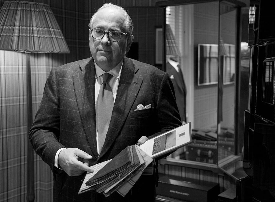 Taj is the Managing Director of Huntsman. With an extensive career in bespoke tailoring, Taj knows just about everybody on Savile Row. An avid sneaker fan, Taj is just as passionate about shoes as he is about suits.
