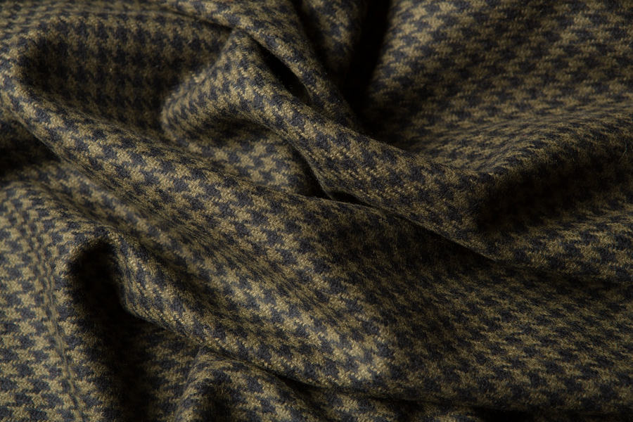 In 2015, Huntsman produced its first cashmere sports jacketing cloth in more than 60 years. A faithful reproduction of a heritage Johnstons of Elgin cloth, first woven in 1953, this black, navy and olive houndstooth came to our attention when we exhibited the Gregory Peck archive of Huntsman outfits. Of the 15 items on display, it was the actor’s houndstooth sports coat from 1961 that drew the most requests – for the cloth and the coat.
