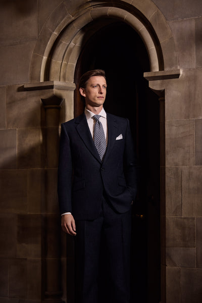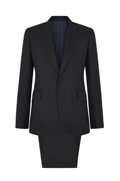This semi-plain navy suit is a timeless addition to any gentleman’s wardrobe, designed to remain a staple for years to come. Its classic design and high-quality construction mean that it will withstand the test of time, both in terms of style and durability. Adhering to the classic Huntsman house style, in the single button cut, this suit is designed with versatility and functionality in mind.
