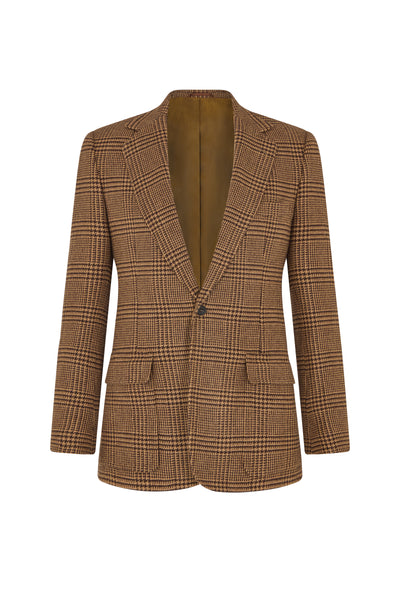 Toffee/Brown Glen Check Patch Pocket Single Breasted Jacket