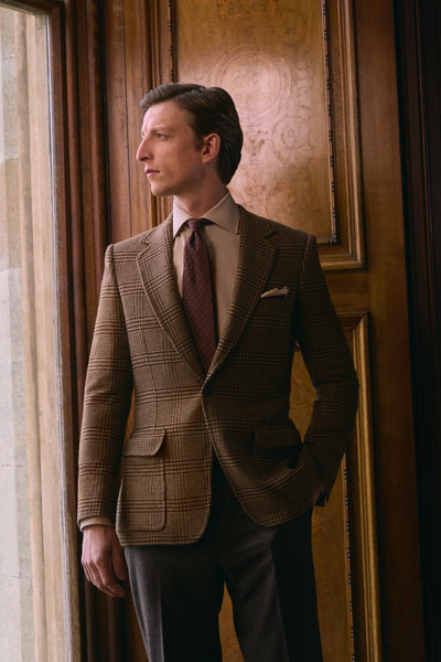 The Huntsman Glen Check Blazer is a perfect blend of traditional British elegance and contemporary style. The single-button closure and notch lapel promise Huntsman's signature sleek silhouette and is ideal for both formal occasions and smart-casual ensembles. Mix and match with your favourite tweeds, corduroys or flannels.