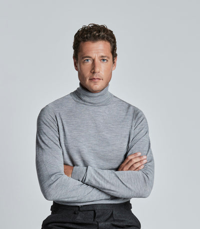 To complement our collection of jackets and sports coats, sumptuously soft and breathable merino knitwear in roll neck and polo collar designs. Merino knitwear is much finer and softer than regular wool, making it comfortable when worn next to your skin. The wool has natural wicking properties which means it keeps you perfectly insulated in chilly temperatures but won’t see you sweat in hotter climates. Merino has long, strong fibres which make it durable, so resists pulling and pilling even when worn next to other wool fibres and under jackets.