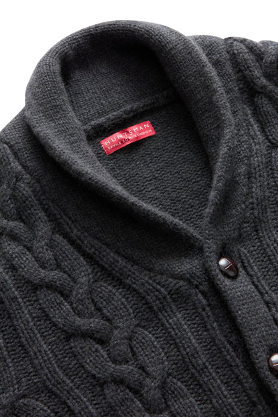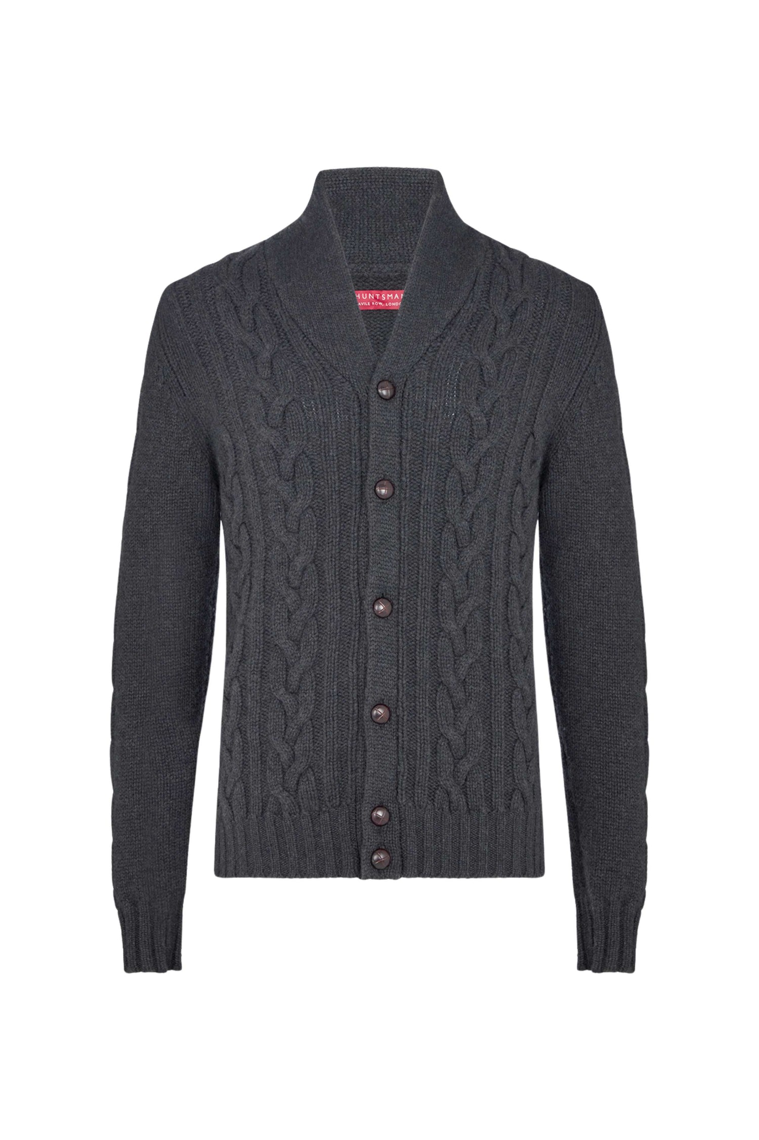 Personalise your Grey Cashmere Shawl Neck Cable Knitwear