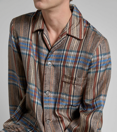 Huntsman silk pyjamas are cut by hand to uphold a supremely soft and elegant finish. Produced in limited quantities, this exquisite silk sleepwear is as comfortable as it is beautiful. Featuring a three-pocket jacket and camp collar, the pyjamas are finished with complementary piping and elasticated trousers.