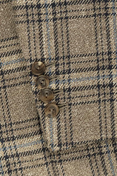 This tan and petrol blue Glen check half-lined sports jacket is a harmonious blend of multi-layered melange yarns, which culminate to soften the overall appearance of the Glen Check. Hues of tan, sand, navy, and petrol blue have been carefully curated to create a jacket that is bold in style but refined in execution.