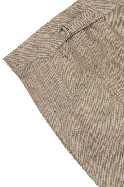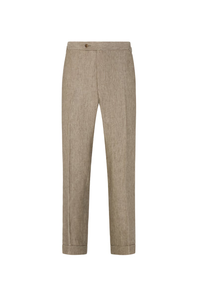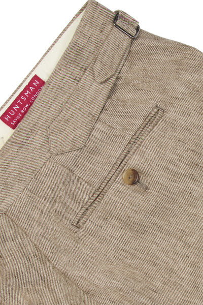 For your warm-weather wardrobe whether at home or abroad enjoy the relaxed sophistication of our flat-front linen trousers cut in the Huntsman house silhouette. For a classic resort style perfectly paired with a light cotton or linen sports coat these trousers look effortlessly chic- Relaxed sophistication for refined, off-duty dressing. Lightweight and breathable, linen trousers are a welcome addition to your summer attire.