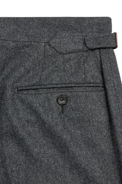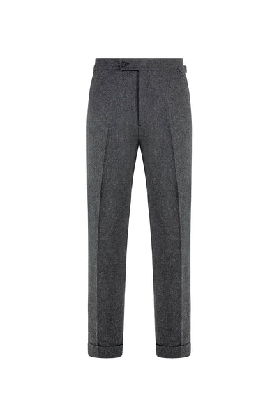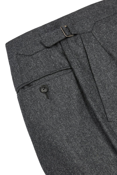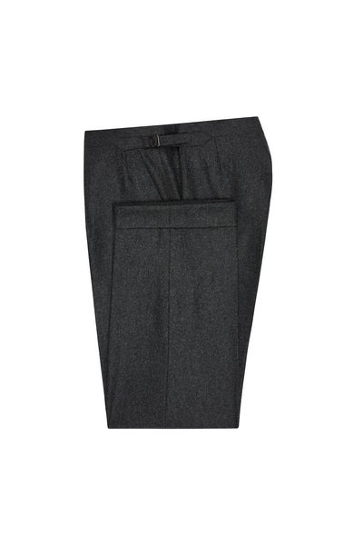 A cornerstone of the refined wardrobe, these charcoal flannel trousers are crafted from 100% wool, offering warmth, softness, and a beautifully draped silhouette. The brushed flannel finish adds seasonal texture, making them ideal for autumn and winter dressing, whether paired with a blazer or worn more casually.