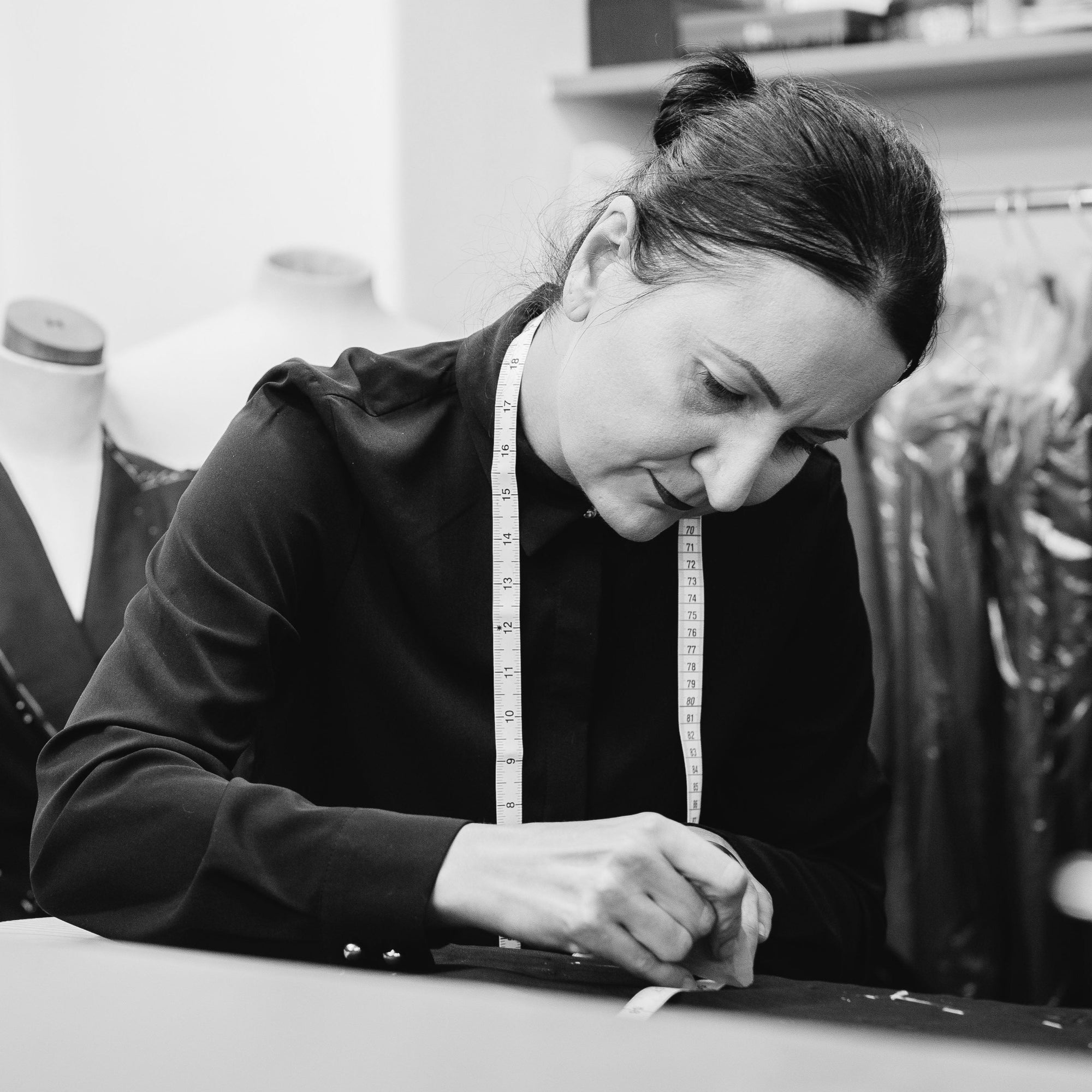 Once your vision is defined, in the privacy of a Huntsman fitting room, Magdalena, our dedicated Ladieswear Cutter will take over 30 precise body measurements to ensure a flawless fit.