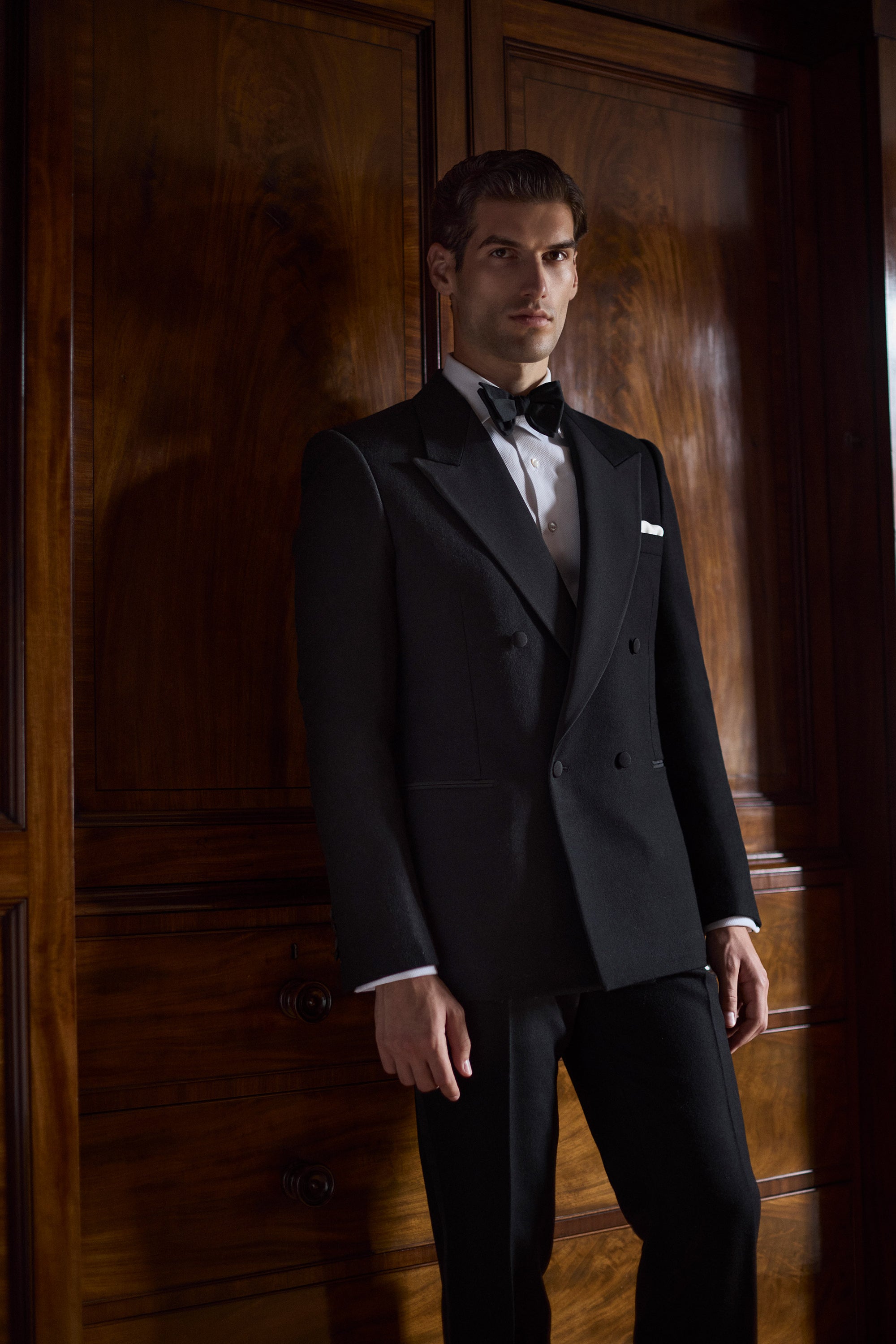 Distinguished by either a peak or shawl lapel, the dinner jacket embodies a heightened sense of formality, bringing refinement and distinction to evening attire.