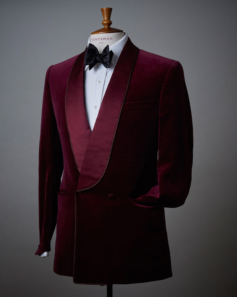 Traditionally cut in velvet, fastenings may feature a frog closure, while buttons provide a refined, contemporary interpretation. Most often designed with a shawl lapel, modern variations occasionally favour a peak lapel for a sharper silhouette. Distinctive frogging, braided detailing that traces the lapels and fastening, remains a defining hallmark of this iconic garment.