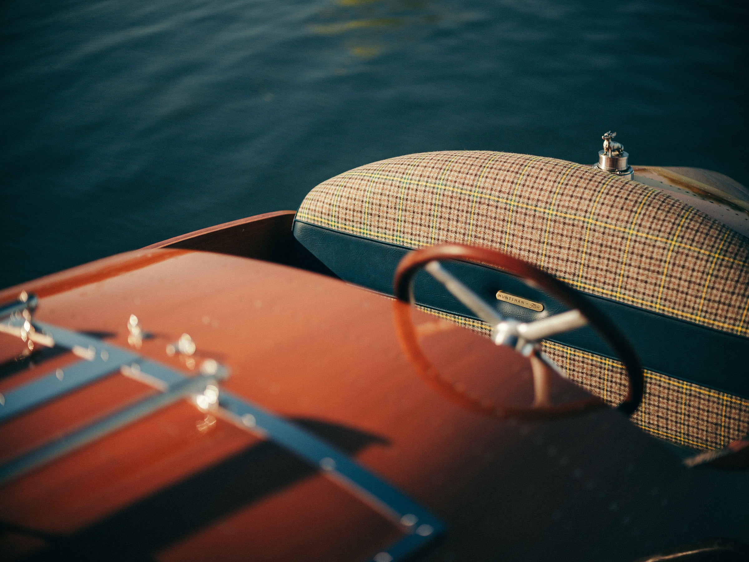 Inspired by vintage watches and the instruments in pre-war Grand Prix cars, Fitzke has meticulously designed and fabricated the gauges and hardware. To upholster the seats with the Huntsman tweed, Fitzke sourced vintage sewing machines that could perfectly replicate 1920s fit and workmanship. Kevin’s methods are elevated with modern construction techniques that respect the heritage of bespoke wooden boat building, while enhancing performance and durability.