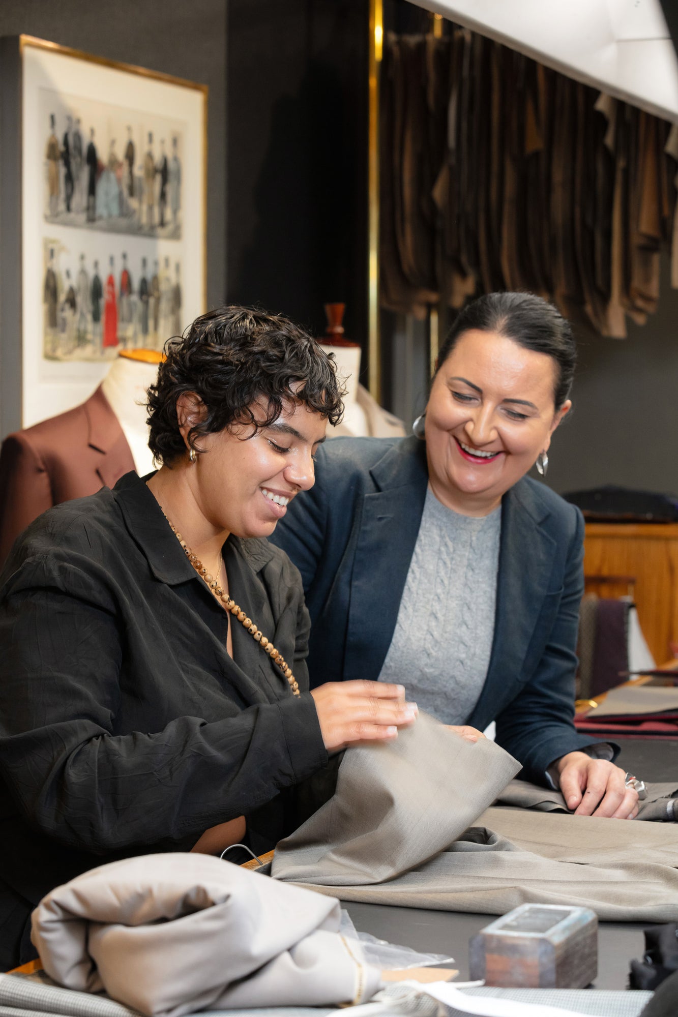 “This collaboration represents an exciting intersection between heritage and modernity,” says Taj Phull, Managing Director of Huntsman. “Through our partnership with Fashion Trust Arabia, we’re proud to champion emerging talent like Nadine, whose creative integrity and modern femininity align beautifully with Huntsman’s values. Together with Magdalena, this project not only celebrates exceptional craftsmanship but also reaffirms our ongoing commitment to empowering women through design.”