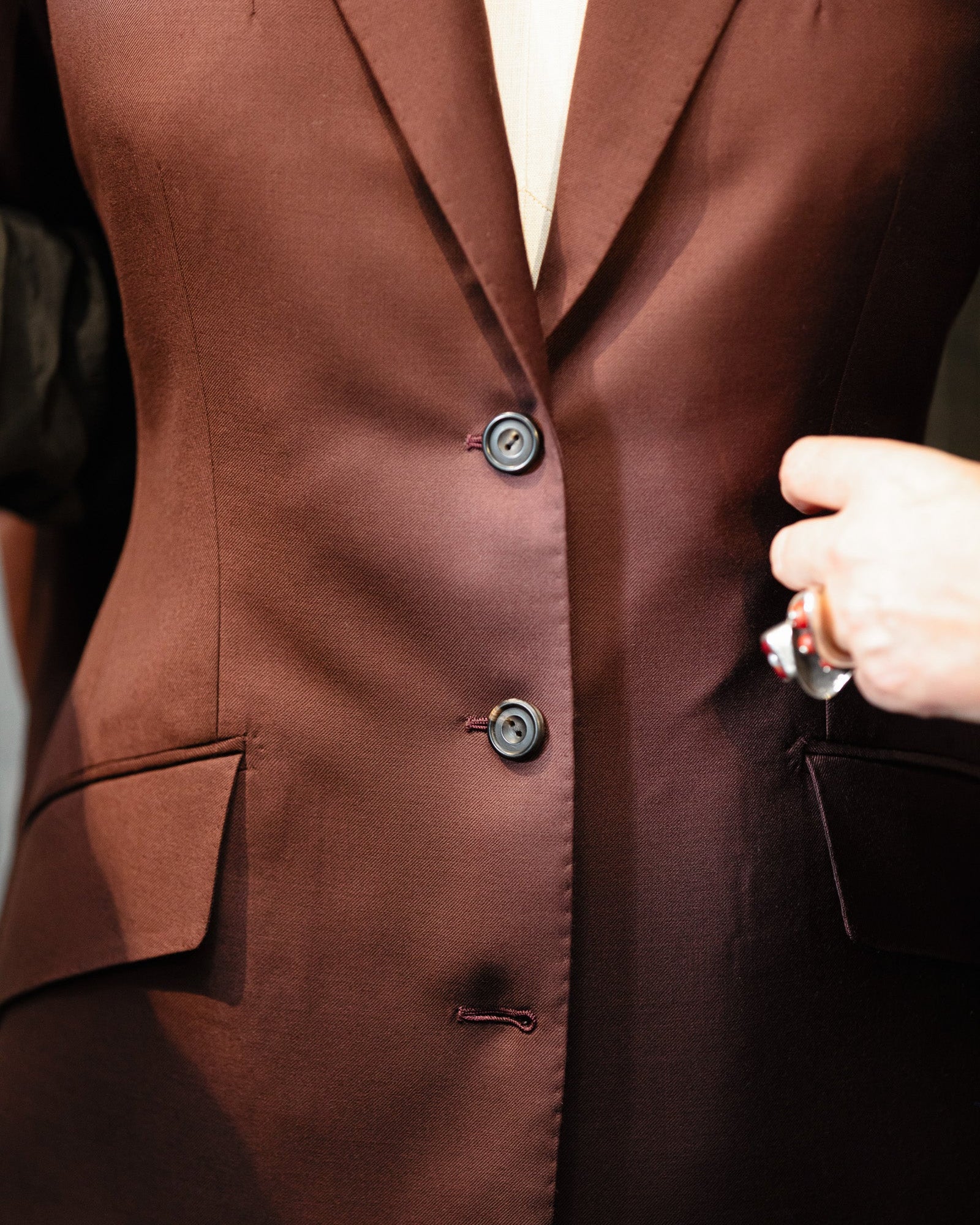 For Nadine and Huntsman’s Head Ladieswear Cutter, Magdalena Handwerker, good design begins with the natural shape and silhouette of a woman, following and enhancing her form rather than restricting it. Within this shared philosophy, the precision of bespoke tailoring meets the fluid creativity of Mos’s sculptural process, to create garments that are elevated, versatile and possess a powerful femininity.