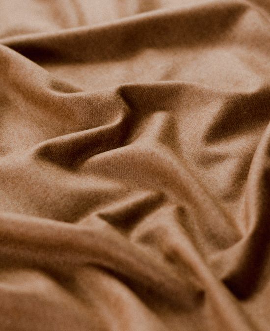 Made from the fibres of sheep's wool, this fabric is one of the oldest and most widely used natural fibres in the world. Wool is valued for its warmth, comfort, and durability. The fibres have natural insulating properties, which help regulate body temperature making wool an excellent choice for garments in different weather conditions.
