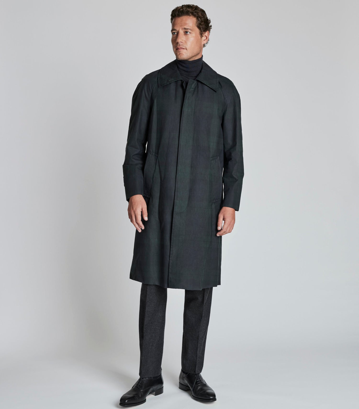 Navy/Green Waxed Cotton Raglan Sleeve Mac
