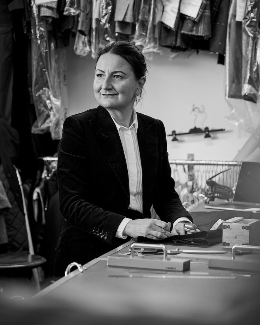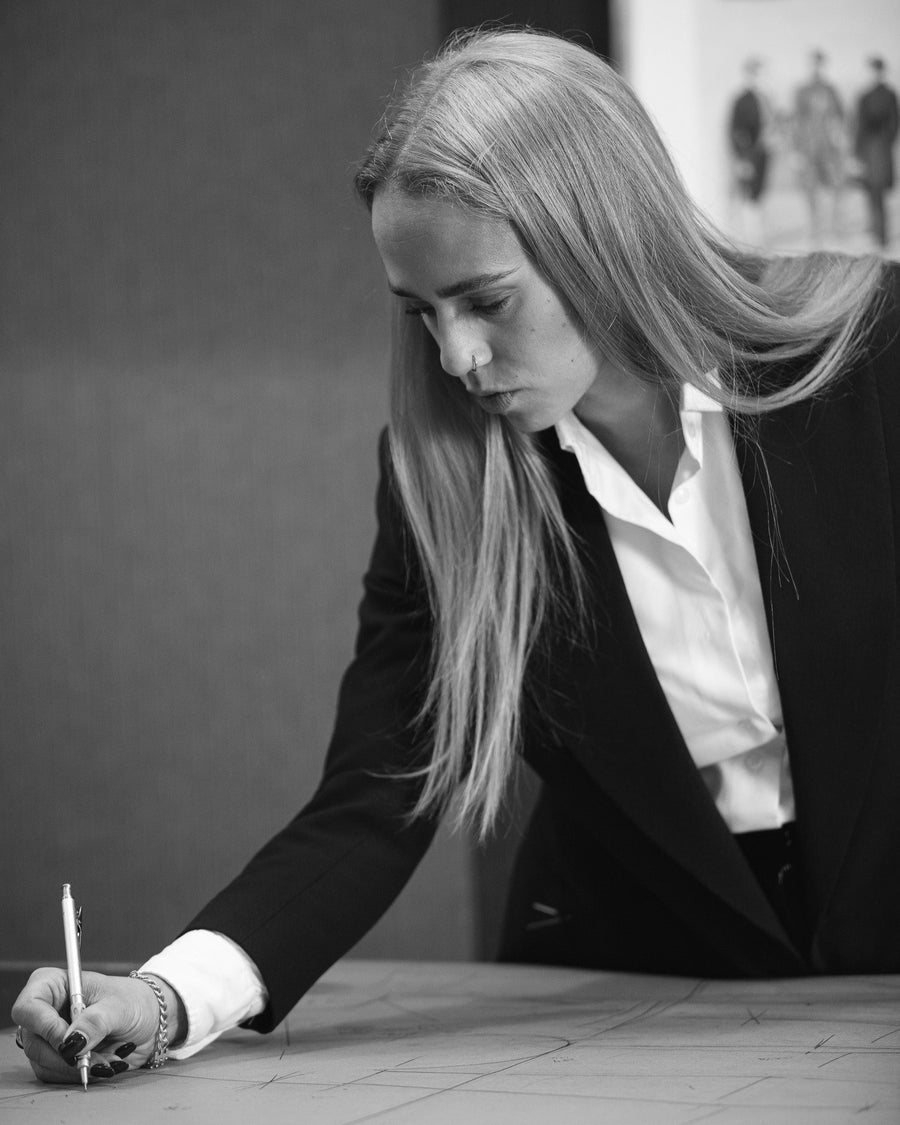 Having interned for four different fashion companies for the last six years and graduated with a master’s degree in menswear at the University of Westminster, she is now exploring the tailoring world and settling in her role as an undercutter.
