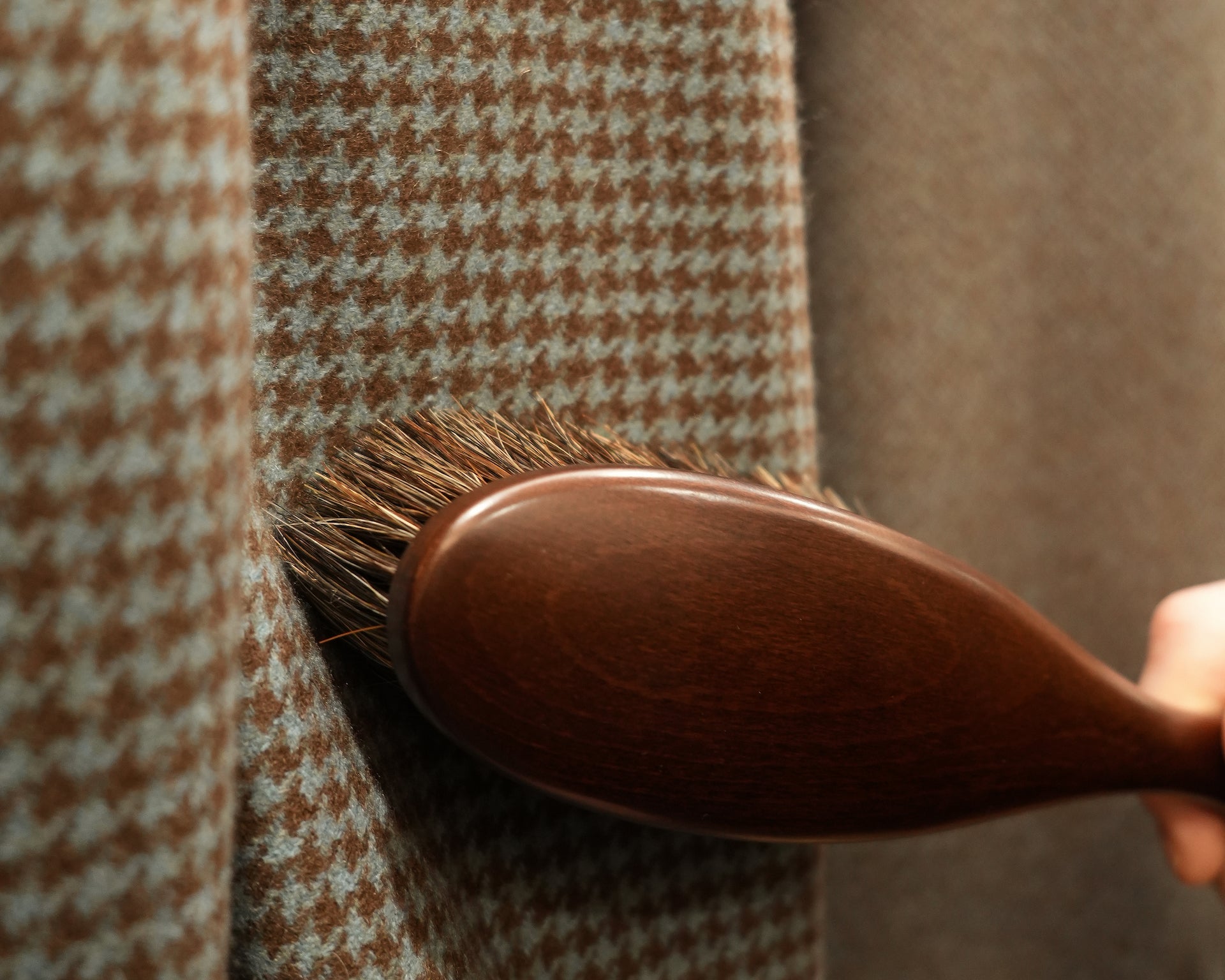 We recommend dry-cleaning your garments only once annually. To refresh your suits, instead opt for a sponge and press clean. If used too frequently, the chemicals applied during the dry cleaning process can damage the cloth fibres of your garments over a prolonged period of time. Research and appoint a dry-cleaner with good reputation and with experience in caring for bespoke clothing. If you’re dry-cleaning a suit, ensure that the whole suit and any additional trousers are cleaned at the same time.