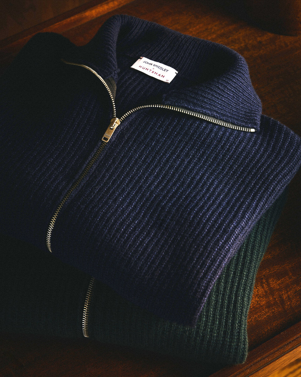 Huntsman x Smedley Midnight Merino/Cashmere Double Zip Jumper