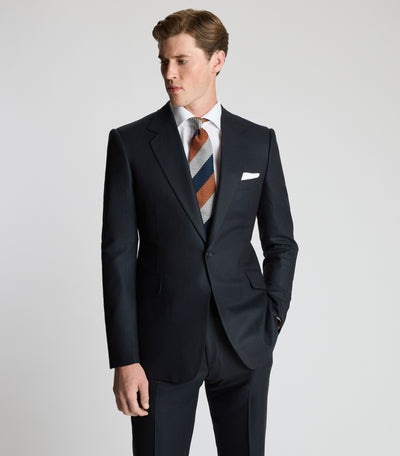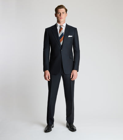Every contemporary gentleman needs an elegant, robust navy suit. Whether for business or formal events, this 6-ply Panama suit is wonderfully soft and easy to wear, yet remarkably durable; perfect for withstanding the rigours of a commute, or travel further afield. Cut in the Huntsman signature one-button cut, our house style creates a clean, contemporary silhouette with single-button fastening. For a streamlined waistline, Huntsman suit trousers come with side adjusters and a zip fly.