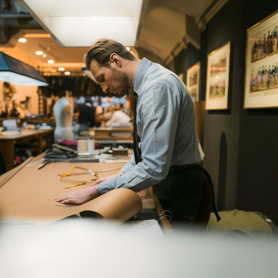 No matter where in the world you choose to see us, all trunk show garments are drafted and cut in Huntsman Cutting Theatres, and made in our workshop at 11 Savile Row, guaranteeing an authentically Savile Row garment, that bears the hallmark of Huntsman excellence.